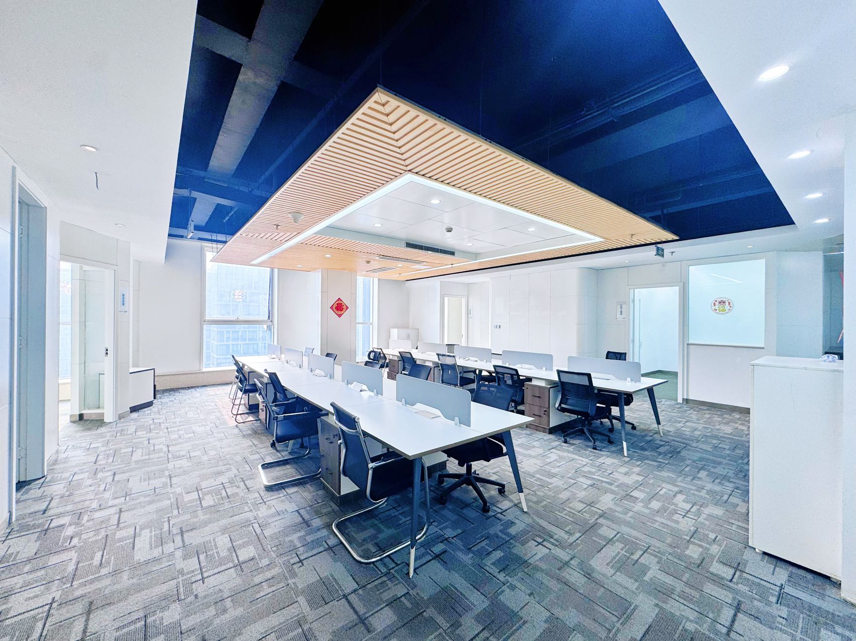 格局:4隔间+洽谈区+40工位.或5隔间+34