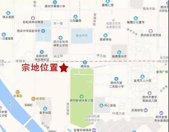地图信息显示,两地块连襟,倚靠主干道崇庆南路,西侧紧邻崇州高铁站及崇州城区最大的市政公园——崇州体育公园,属于崇州城区核心位置。